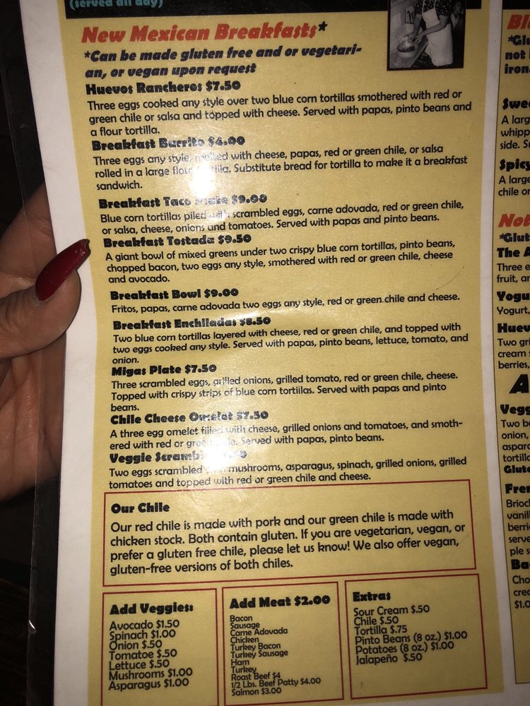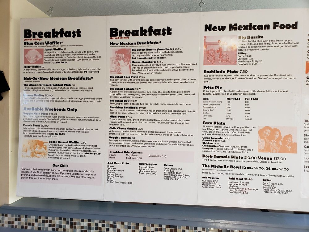 Tia Betty Blue's, located in Albuquerque, NM, offers an extensive breakfast and brunch menu with a mix of traditional New Mexican favorites and unique dishes. The restaurant provides a range of amenities, including delivery, takeout, outdoor seating, and even dog-friendly options. Visitors can enjoy various breakfast options, such as Breakfast Bowls, Breakfast Burritos, and Blue Corn Waffles. Customer reviews rave about the generous portions and flavorful dishes, with standout items like the Big Burrito with calabacitas and Christmas chile. The friendly staff and cozy atmosphere make for a pleasant dining experience. Whether you're a local or just passing through town, Tia Betty Blue's is a must-visit for a satisfying meal.